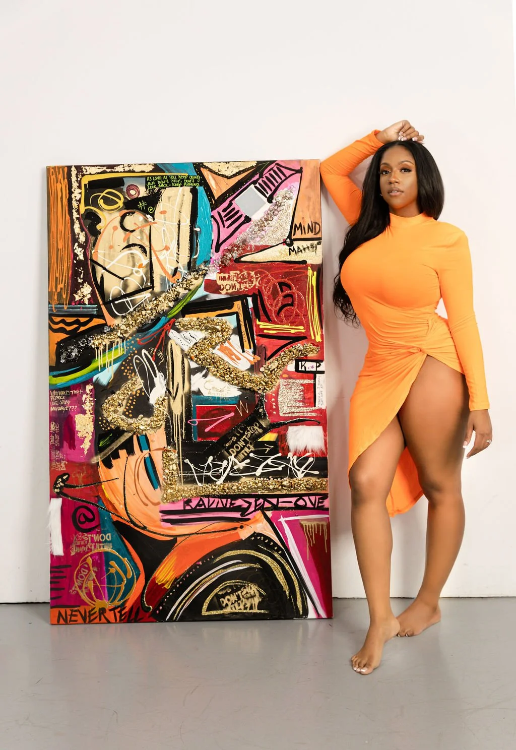 Sadè, is a proud African American- Cherokee Indian woman and Mixed Media Abstract Artist. She graduated with a A.A degree in criminal justice and B.A in liberal arts— marrying her strength of practicality and instinctual perspective. And as full-time mother she approaches her work with incredible harmony. With over 300 freestyle and custom paintings in her 2-year art journey, her multi-faceted lens is a gem for many who resonate with her style. Loyal collectors include names like Tokyo Vanity, Tokyo Jets and Milan Di Rouge, and you can find her work at NYC Juice Bar and the Virgin Islands.